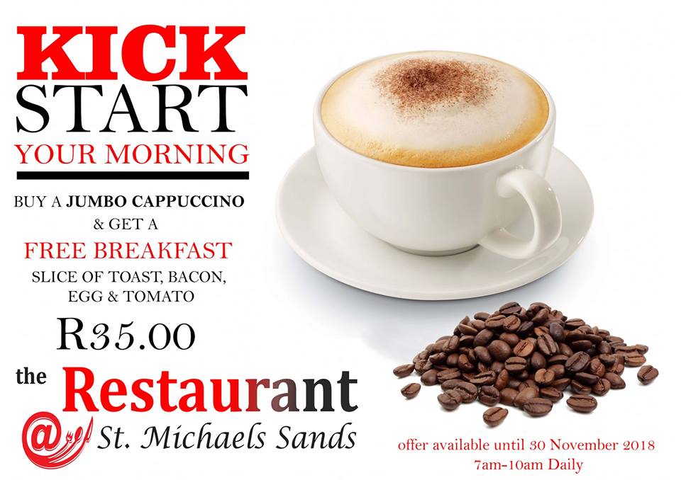 Nothing beats a Delicious Cappuccino Coffee to Kick Start your morning… Pair that with a delicious free breakfast and a view to die for and you have yourself a winning recipe for a great day!!! Take time out to spoil yourself with this Coffee Cappuccino for R35 plus Free Breakfast
